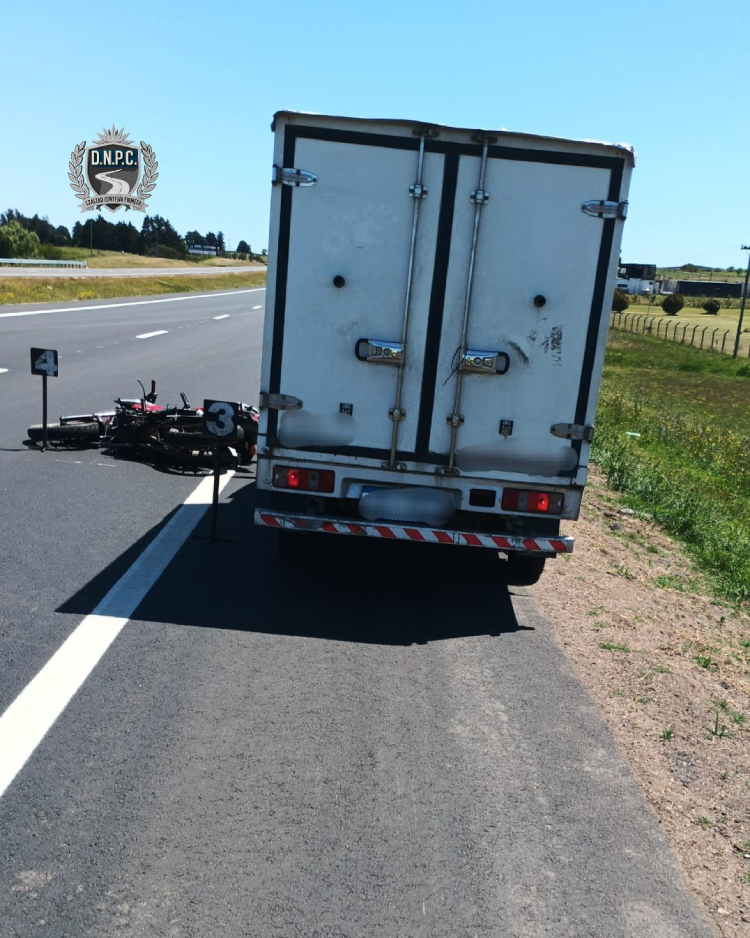 Por causas a establecer, un motociclista que circulaba de Sur a Norte embiste la parte trasera de un Camión que se encontraba detenido en banquina este, la moto al impactarlo sale despedida hacia la senda rápida siendo su conductor embestido por una camioneta que circulaba en la misma dirección.