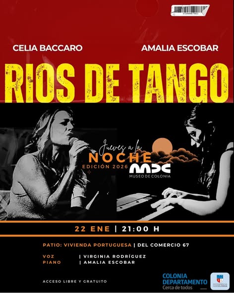 Una noche de tango y música Rioplatense en la voz de Celia Baccaro, acompañada por Amalia Escobar en el piano. Un recorrido por un amplio repertorio, que incluye a los grandes autores del género, en sus versiones cantadas e instrumental.