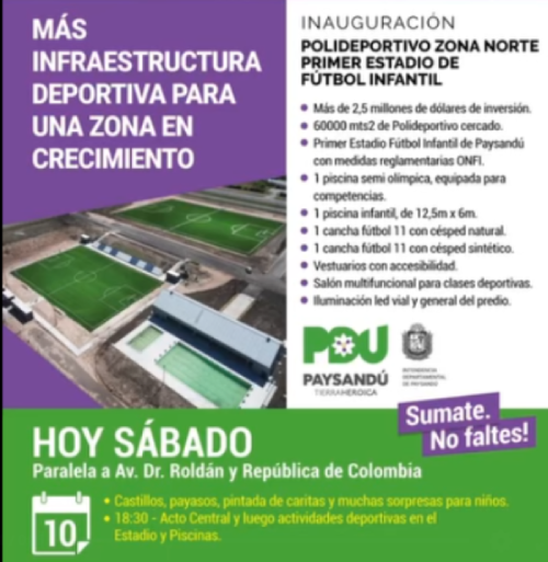La Intendencia de Paysandú invita y los espera en el Polideportivo Zona Norte, para inaugurar una obra anhelada, que transforma la fisonomía de un amplio sector...